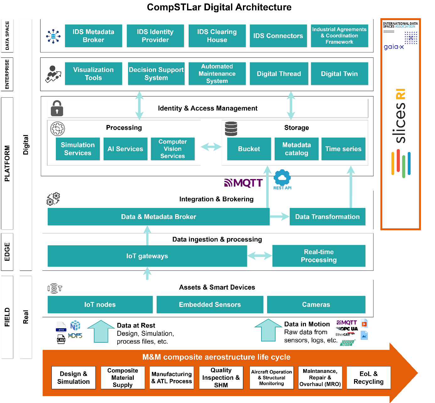 2. The CompSTLar Digital Framework, outlining a federated, modular, and interoperable infrastructure to orchestrate the lifecycle of thermoplastic composite aerostructures.